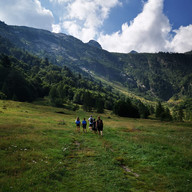 Arriviamo nella zona più "affollata" della valle, la grande piana in prossimità delle Cascine. Qui ci fermiamo per una breve pausa per rinfrescarci alla fontana prima di fare rientro.